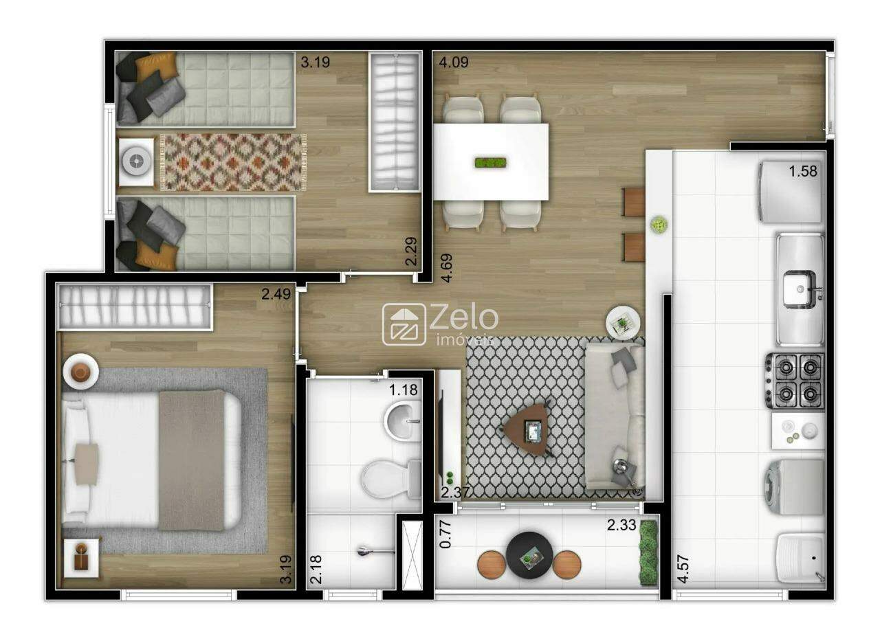 Imóvel recém entregue, bem arejado com uma vista de tirar o folego, área com muito verde e condomínio completo com excelente área de lazer. Composto de living para dois ambientes com sacada, cozinha com armários, lavanderia, dois dormitórios, banheiro social com box blindex, e uma vaga de garagem descoberta. Preparação para instalar aquecedor a gás. Venha morar neste lindo empreendimento e passar bons momentos com sua família e amigos.