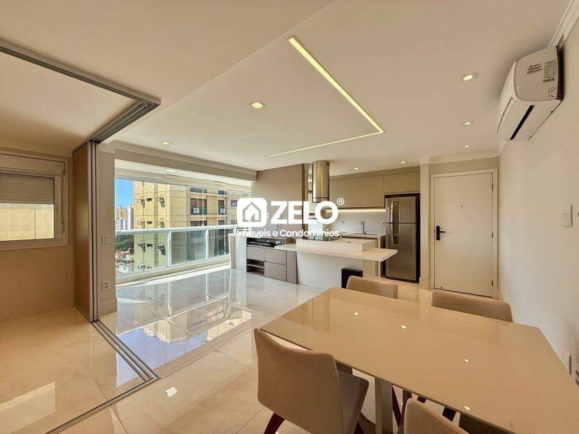 Apartamento para aluguel com 77,00 m², localizado no bairro Cambuí, em Campinas. Situado no décimo quinto andar, o imóvel é de alto padrão e aceita pet de pequeno porte. Conta com sala ampla para dois ambientes, equipada com ar condicionado, planejado para tv, persianas em toda a fachada e mesa com quatro cadeiras. Possui dois dormitórios, sendo duas suítes com persiana e cortina blackout, ambos com armários planejados, cama box e ar condicionado, banheiros das suítes com box, espelho e armário. Há também um escritório e uma cozinha completa, rica em armários planejados, com aquecedor a gás, fogão por indução, forno, micro-ondas, coifa, geladeira Electrolux, máquina de lavar, máquina de secar, lava louças e churrasqueira privativa. O apartamento conta ainda com duas vagas de garagem cobertas e paralelas. Está localizado em uma excelente região, com fácil acesso e ampla oferta de comércios e serviços.