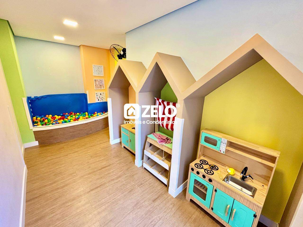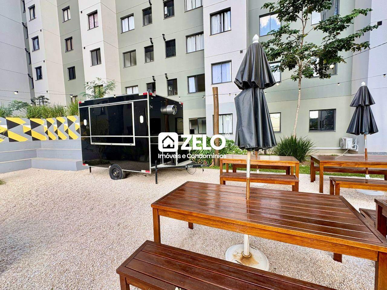O condomínio oferece portaria 24 horas, elevador, academia, salão de festas, churrasqueira, coworking, bicicletário, playground, quadra esportiva e áreas de convivência.