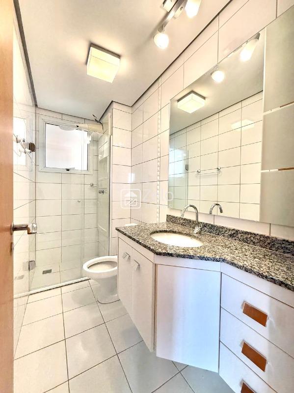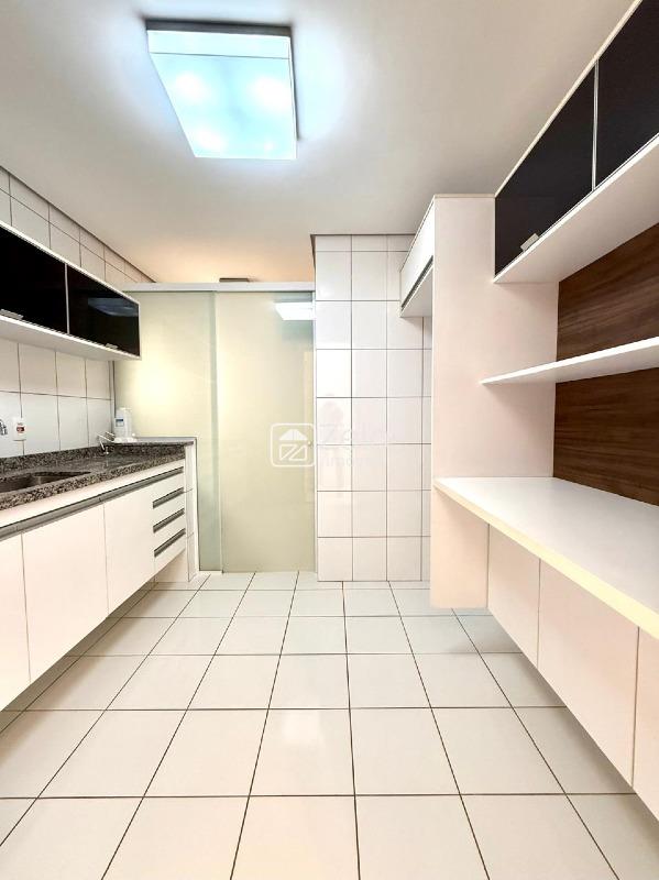 O imóvel conta com três quartos, sendo 1 suíte e três banheiros no total. Todos os quartos e a sala possuem ar-condicionado. O piso é de porcelanato novo e o apartamento está completo com móveis planejados em todos os ambientes. Aceita pet.