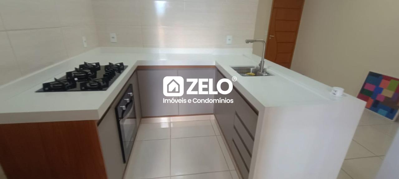 O imóvel conta com dois quartos, sendo uma suíte com ar-condicionado, e dois banheiros no total. A cozinha possui bancada em quartzo branco, armários planejados, cooktop e forno elétrico. A casa dispõe de portão basculante eletrônico e duas vagas de garagem.