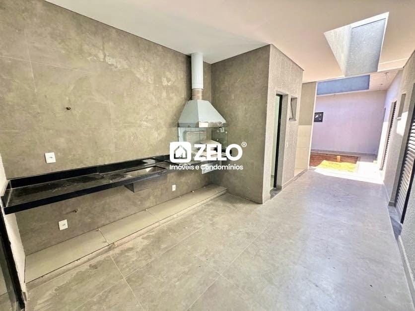 Imóvel possui três quartos todos com suítes, dois com armários planejados e um com closet, sala de estar e de jantar integradas com pé direito alto, cozinha com armários planejados e ilha, área gourmet com churrasqueira e com banheiro, jardim de inverno, energia Fotovoltaica e duas vagas de garagem. Aceita Pet.