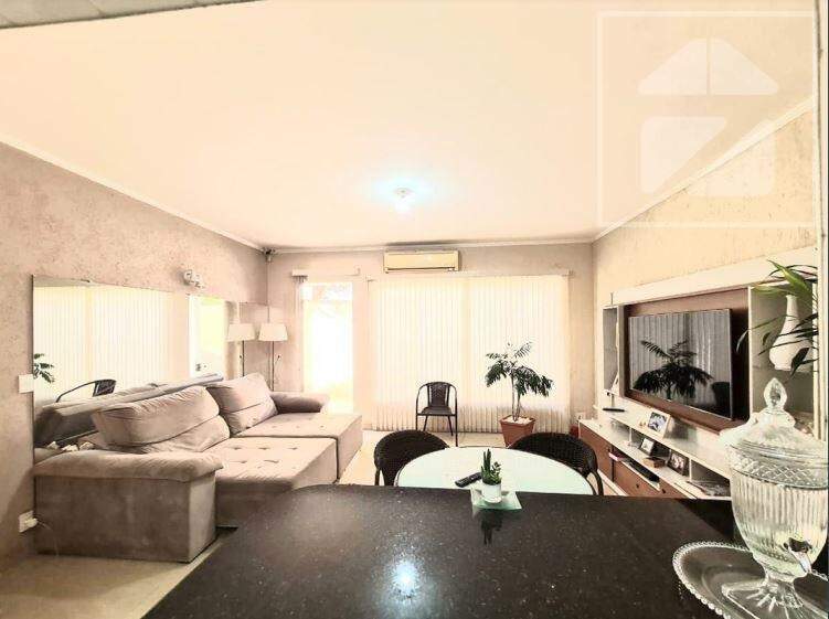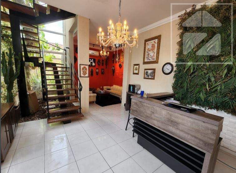 Oferecida sem mobília e inclui três salas amplas, quatro dormitórios com armários sendo uma suíte, três banheiros, cozinha com gabinete, área de serviço, área gourmet com churrasqueira e quatro vagas de garagem. Aceita pet.