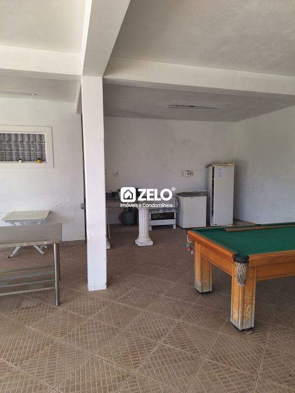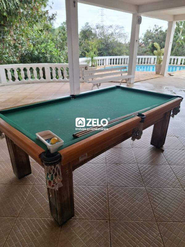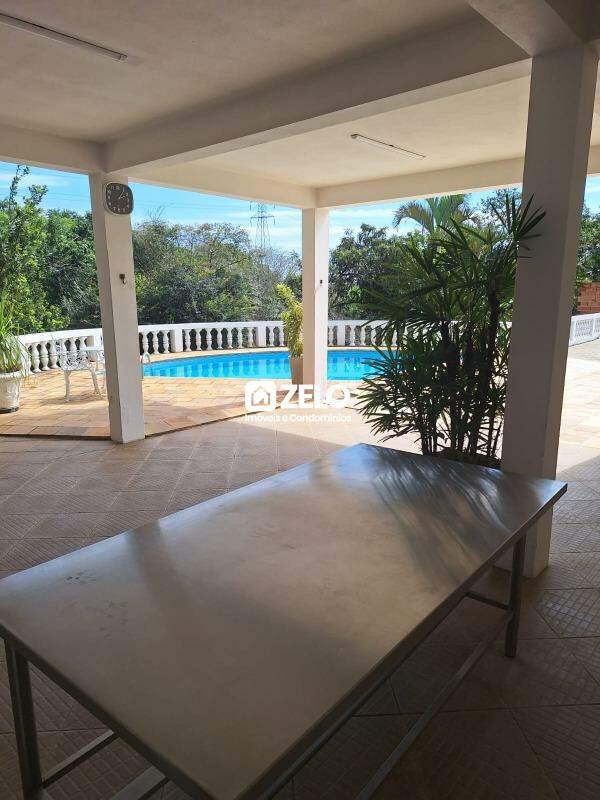 Imóvel estilo chácara possui três dormitórios sendo 1 suíte com banheira, cozinha com armário, varanda, área de serviço coberta, sala de TV e sala de jantar, piscina com espaço coberto para lazer, árvores frutíferas e 15 vagas de garagem. Aceita pet de pequeno porte.