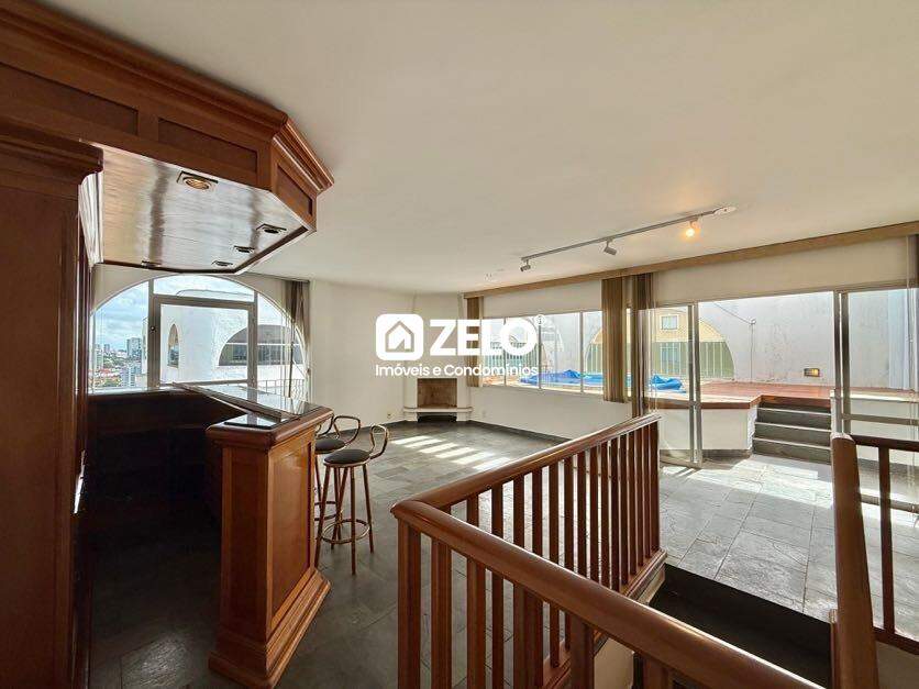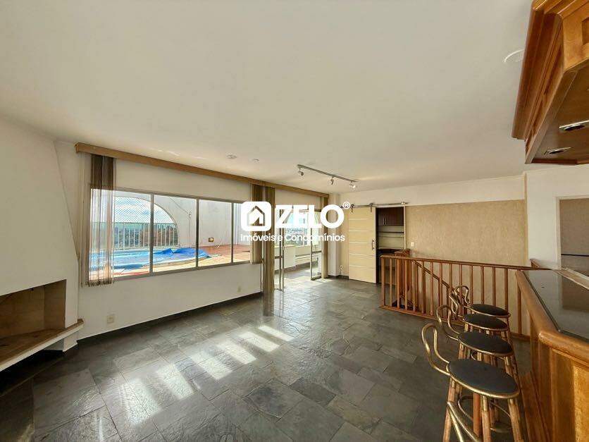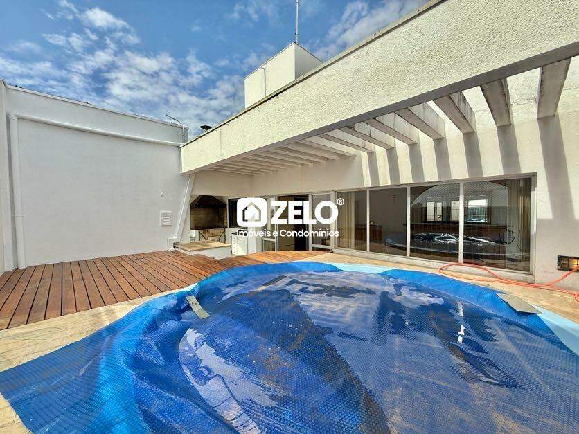 Cobertura duplex para aluguel com 303,00 m² no Jardim das Paineiras, em Campinas. Aceita pets. No piso inferior, conta com três dormitórios com sacada, sendo uma suíte, banheiro social, sala de jantar, sala de estar e cozinha ampla, totalmente planejada. No piso superior, dispõe de uma sala espaçosa com lareira, escritório, banheiro, espaço gourmet com churrasqueira e terraço com piscina privativa. Possui duas vagas de garagem cobertas.