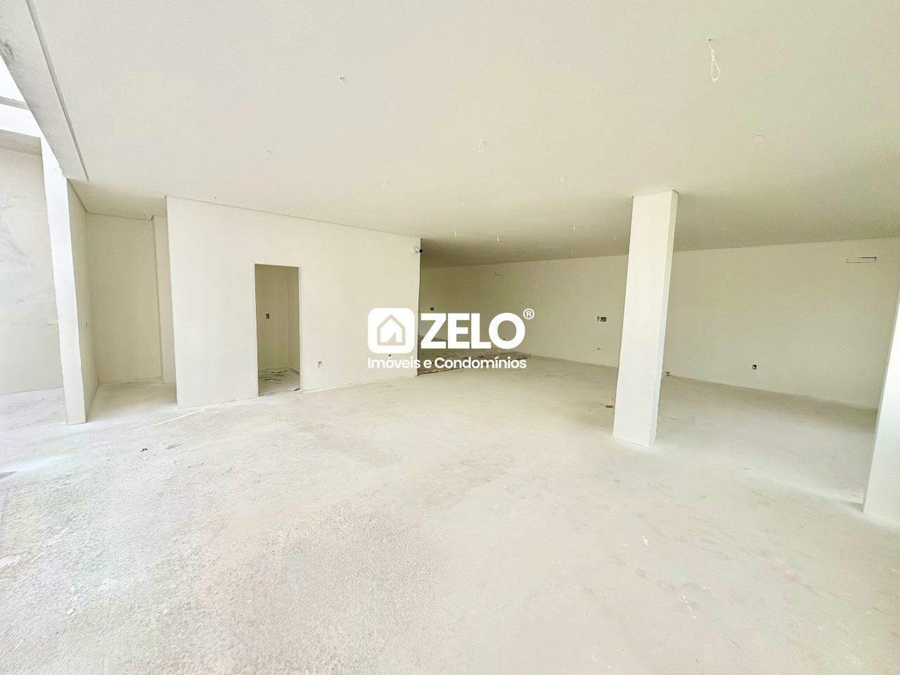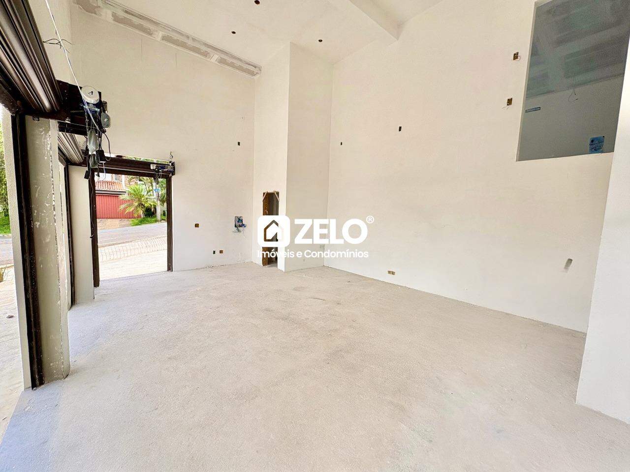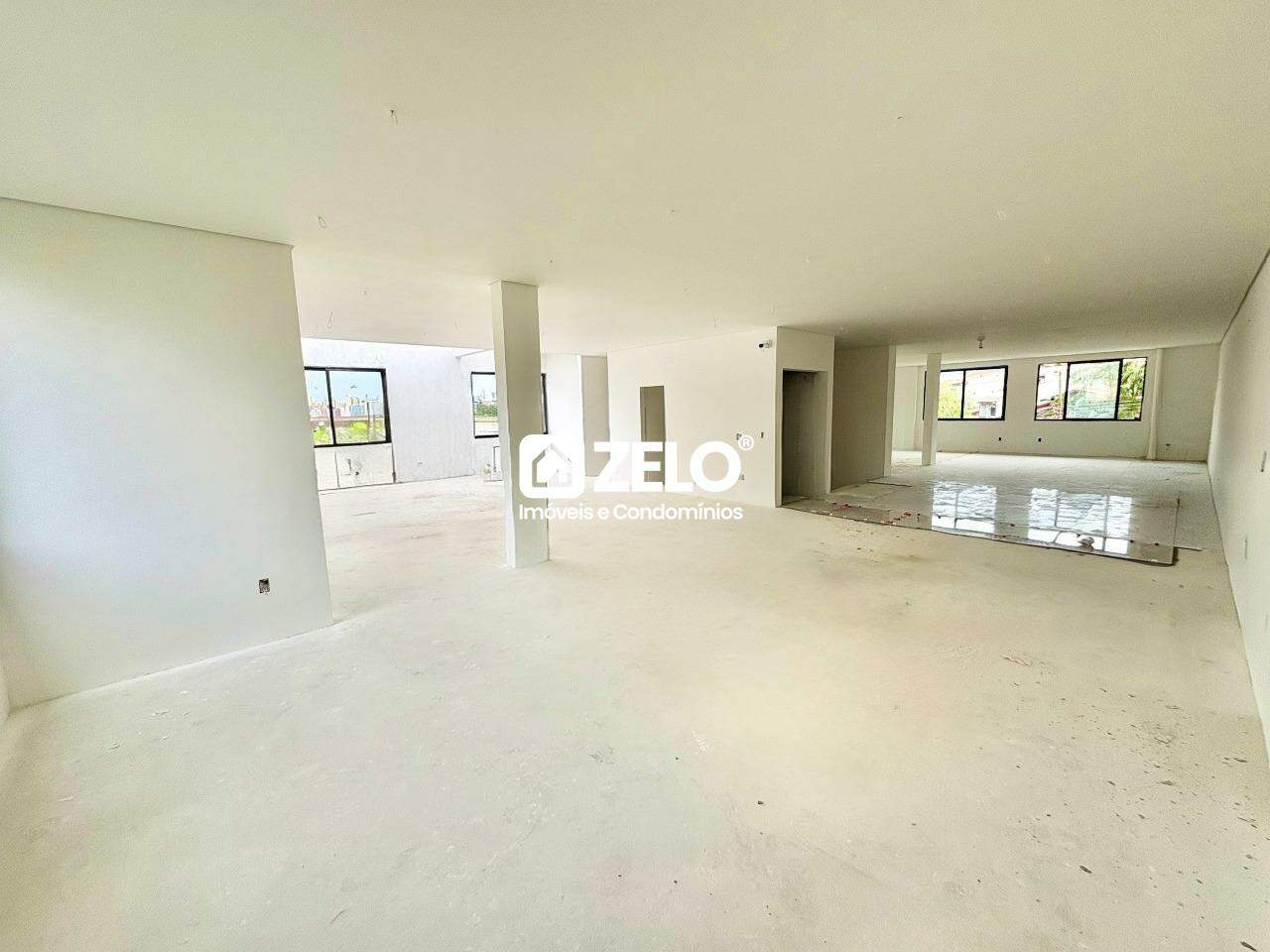 2 salas térreas com pé-direito elevado, Banheiro, infra p/ 2 ar cada sala, preparado para mezaninos.