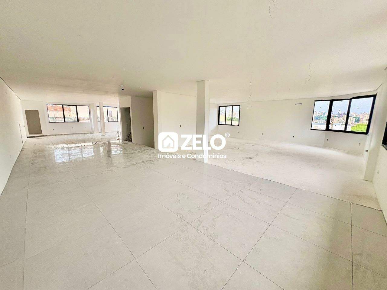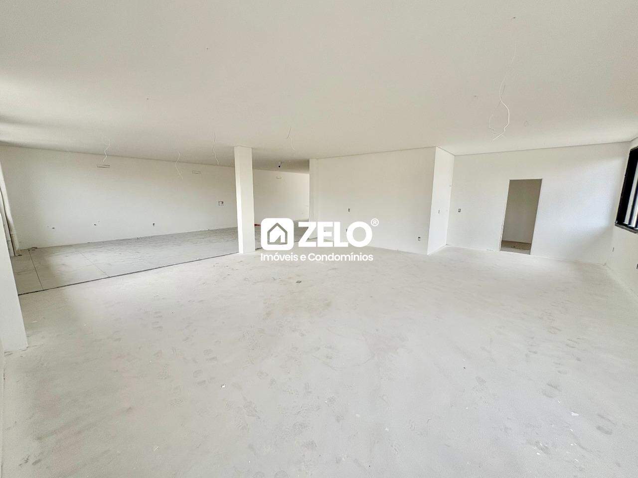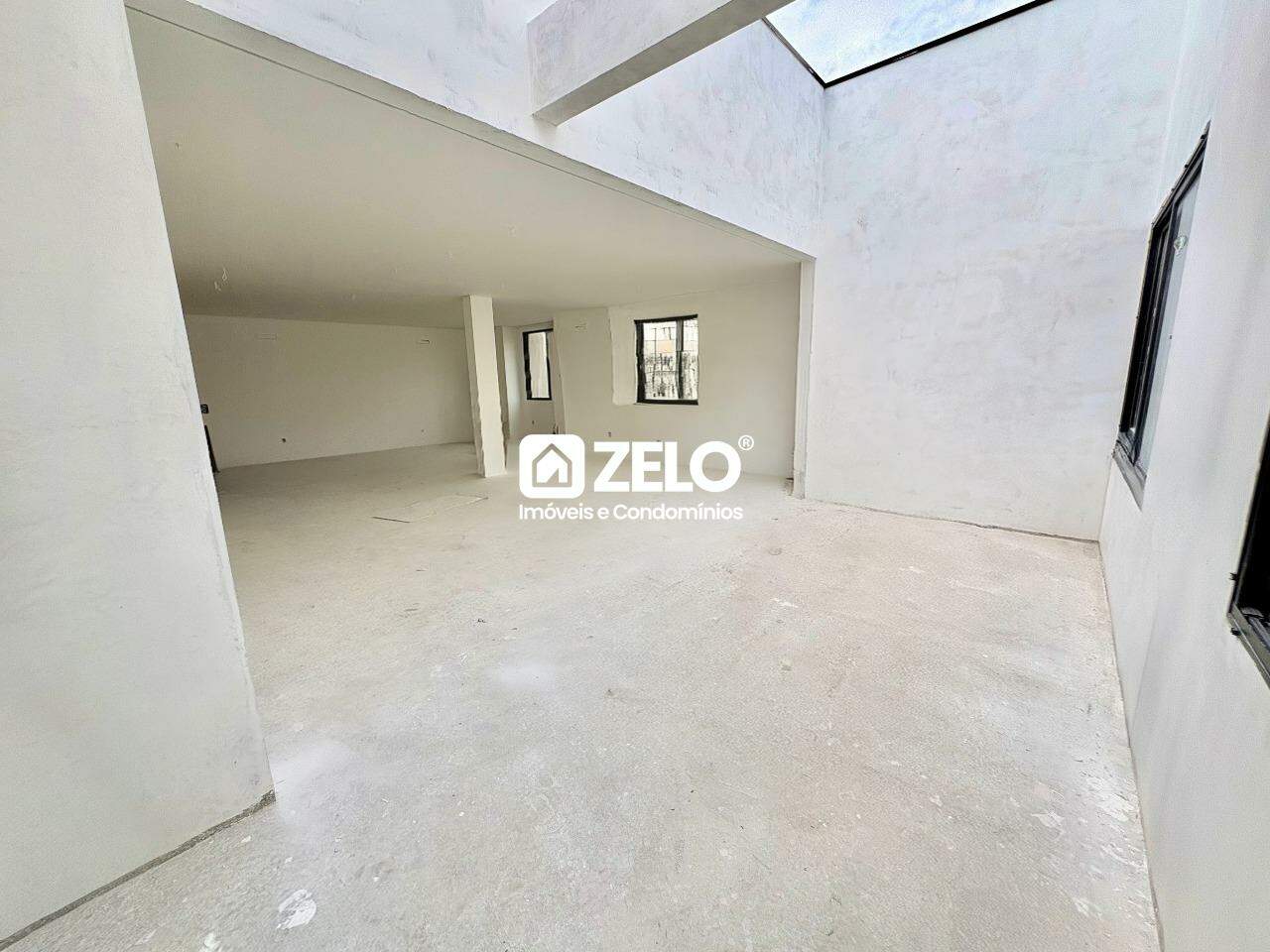 2 salas térreas com pé-direito elevado, Banheiro, infra p/ 2 ar cada sala, preparado para mezaninos.