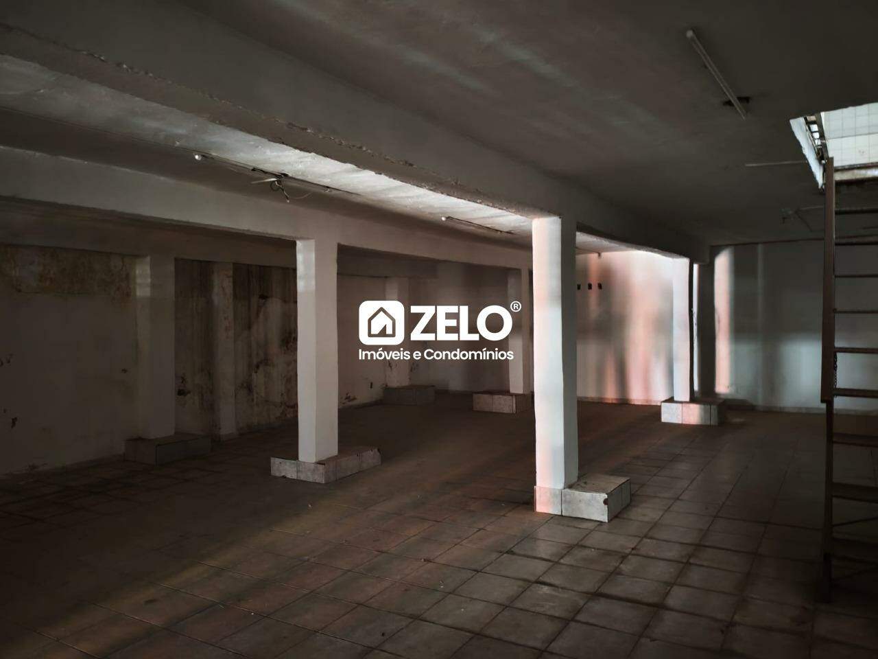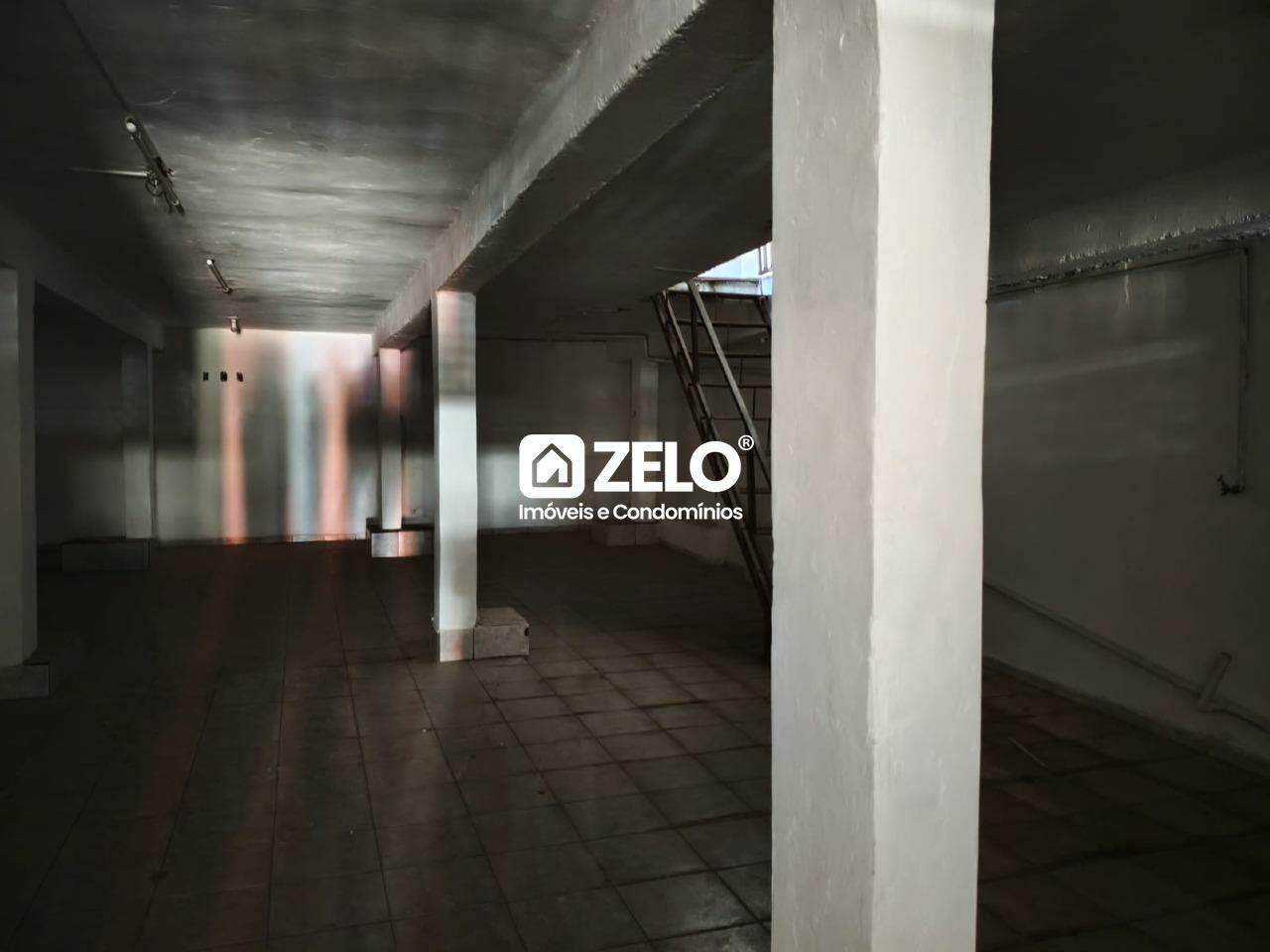 Salão comercial para locação no Centro de Campinas, com área interna de 320m² e terreno total de 453,79m², incluindo mezanino.